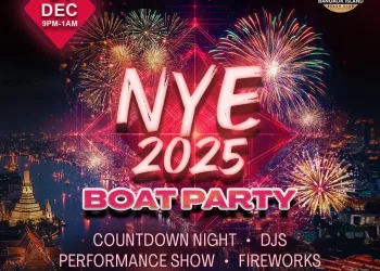 Set sail on the NYE 2025 Party Cruise at Bangkok Island: DJs spinning house, techno, and disco, a 4-hour river cruise, cocktails, and breathtaking fireworks.