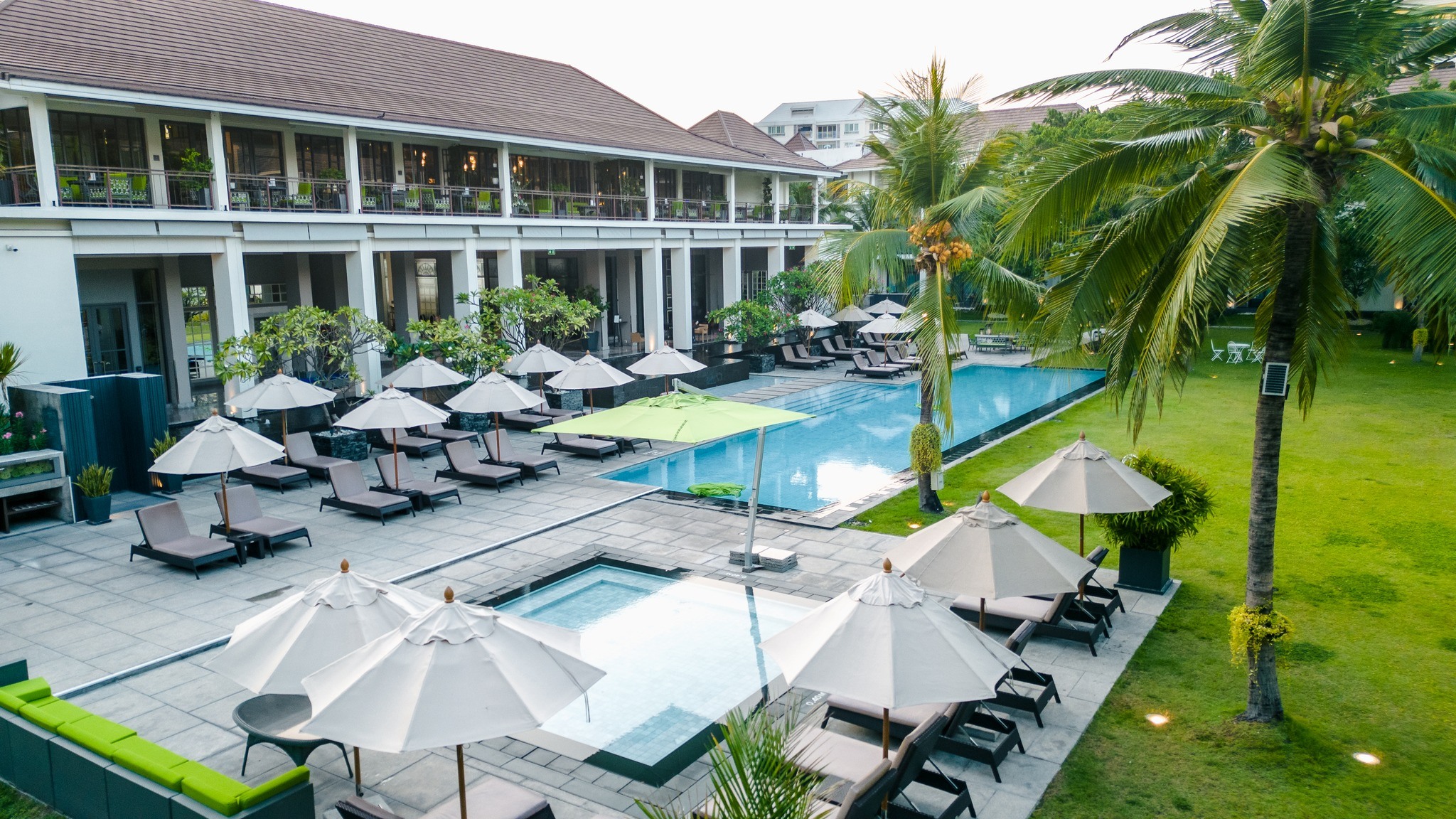 Discover a tranquil oasis in the heart of bustling Bangkok at U Sathorn, a French Colonial-inspired luxury hotel offering a serene escape in the vibrant Sathorn district. The beautifully appointed accommodations, including Superior, Deluxe Garden, and Terrace Garden rooms, are spread across three low-rise wings and nestled within lush green courtyards, creating a peaceful retreat. At the center of it all is a sparkling swimming pool, adding to the hotel’s relaxed atmosphere.