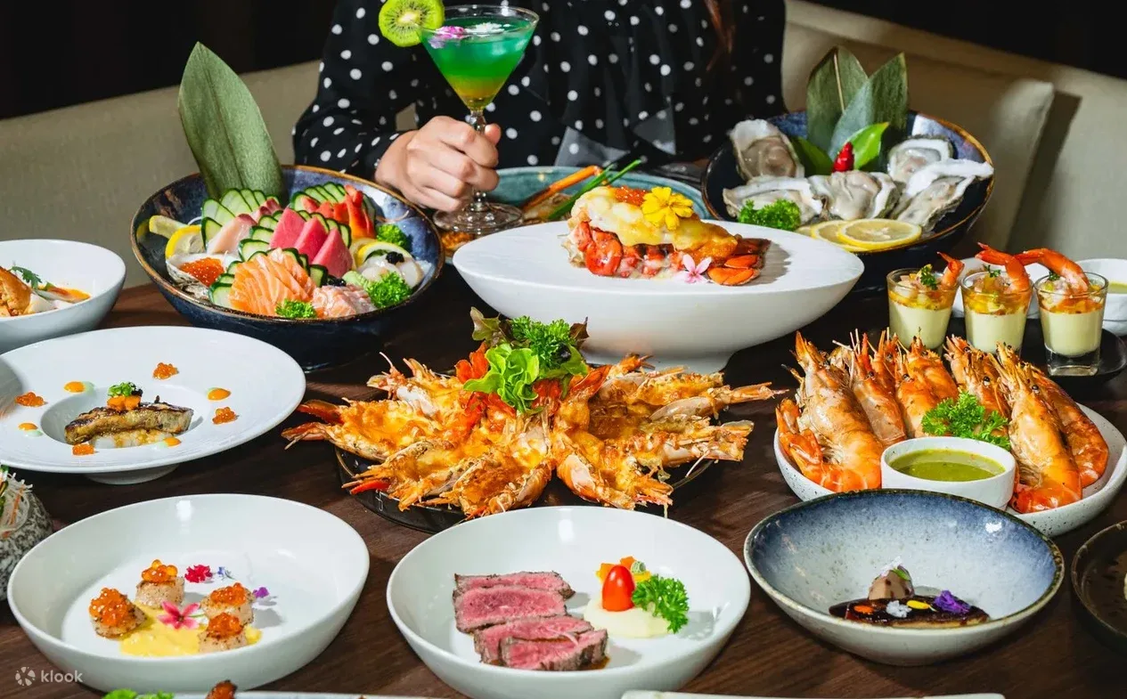 Packages start at ฿1,100 for the weekday buffet and ฿1,166 for weekends. For the ultimate indulgence, the Premium Buffet at ฿3,059 offers unlimited lobster, foie gras, and uni.