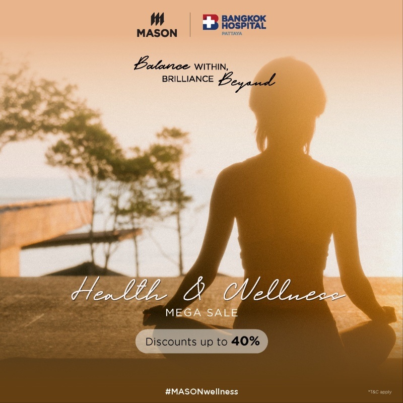 Revitalize your health at MASON’s Health & Wellness Mega Sale, featuring packages discounted up to 40%* from May 16 to 31, 2025. Developed with Bangkok Hospital Pattaya, these science-backed programs blend anti-aging innovation, personalized consultations, and luxury therapies for transformative results.