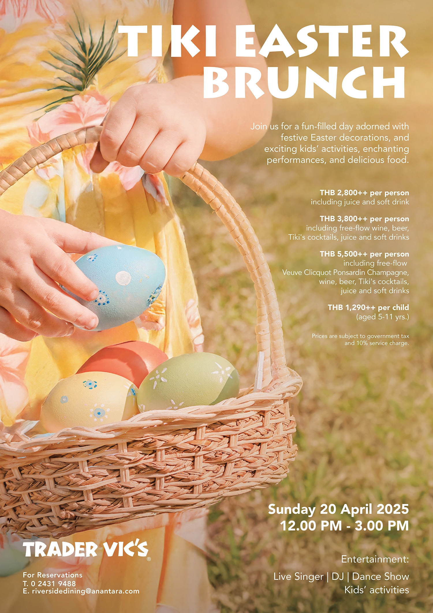 Families are welcome, with kids’ activities and special Easter-themed fun for little ones. Children aged 5-11 can enjoy the brunch for THB 1,290++, making this a memorable celebration for all ages.