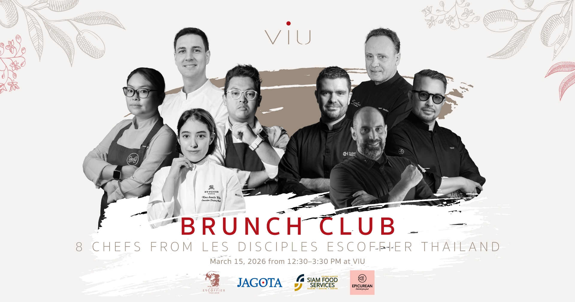 Brunch Club x Escoffier Thailand marks the first Brunch Club of 2026, gathering eight distinguished Disciples Escoffier Thailand chefs for an immersive brunch celebrating French culinary tradition. Hosted at VIU, the event is designed to highlight craftsmanship, heritage, and premium ingredients through interactive dining moments.
