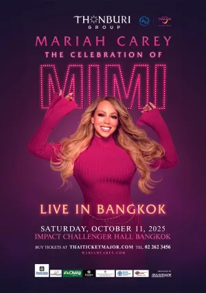 Global superstar Mariah Carey brings "The Celebration of Mimi Tour" to Thailand for a special performance on Oct. 11 at Impact Challenger Hall, Muang Thong Thani. The tour honors the 20th anniversary of her career-defining album, "The Emancipation of Mimi," which featured timeless hits like “It’s Like That,” “Shake It Off,” and the record-breaking ballad “We Belong Together.” Fans can also look forward to hearing beloved classics like “Vision of Love” and the holiday anthem “All I Want for Christmas Is You.”