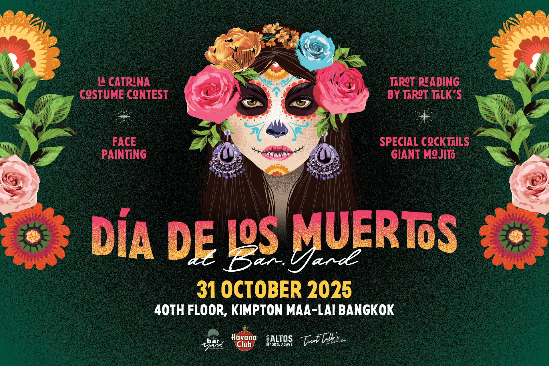 Step into a world of colour, music, and mystique at Día de los Muertos: The Bar.Yard Halloween Party on Oct. 31, 2025, from 5 PM to 2 AM at Bar.Yard, 40th Floor. This Halloween, the city’s favourite rooftop bar transforms into a lively fiesta honouring life, death, and everything delicious in between.