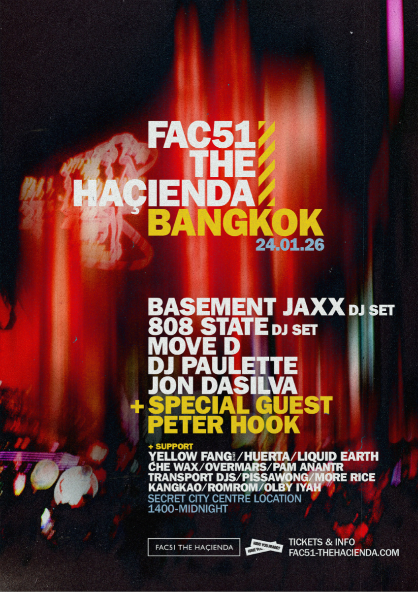 FAC51 The Haçienda returns to Bangkok on Jan. 24, 2026, taking over a secret city-centre venue for a large-scale yet intimate 2,000-capacity event that blends club history with contemporary sounds. The night honors the spirit, inclusivity, and energy that made The Haçienda a global cultural landmark.