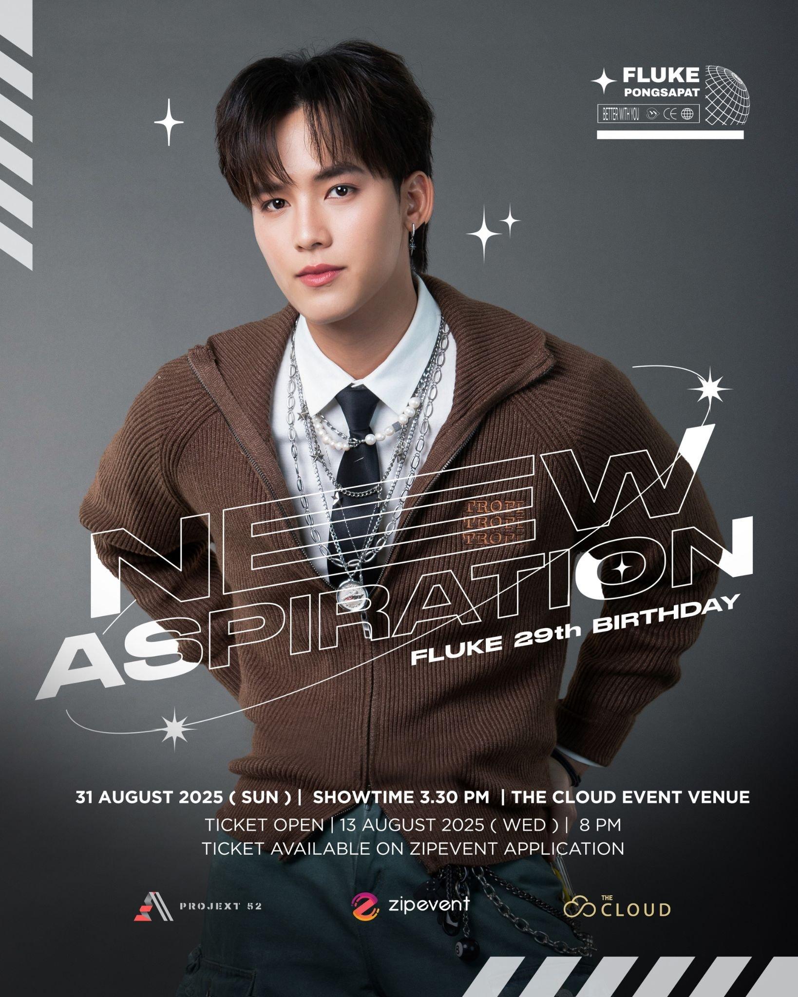 Celebrate Fluke Pongsapat’s 29th Birthday at “New Aspiration,” happening at The Cloud Event Venue on Aug. 31, 2025. Fans can enjoy live music, performances, and multiple interactive opportunities with Fluke, the Thai actor and model recognized for his work in series like "Macalee Tee Ruk" and "To Be Continued."
