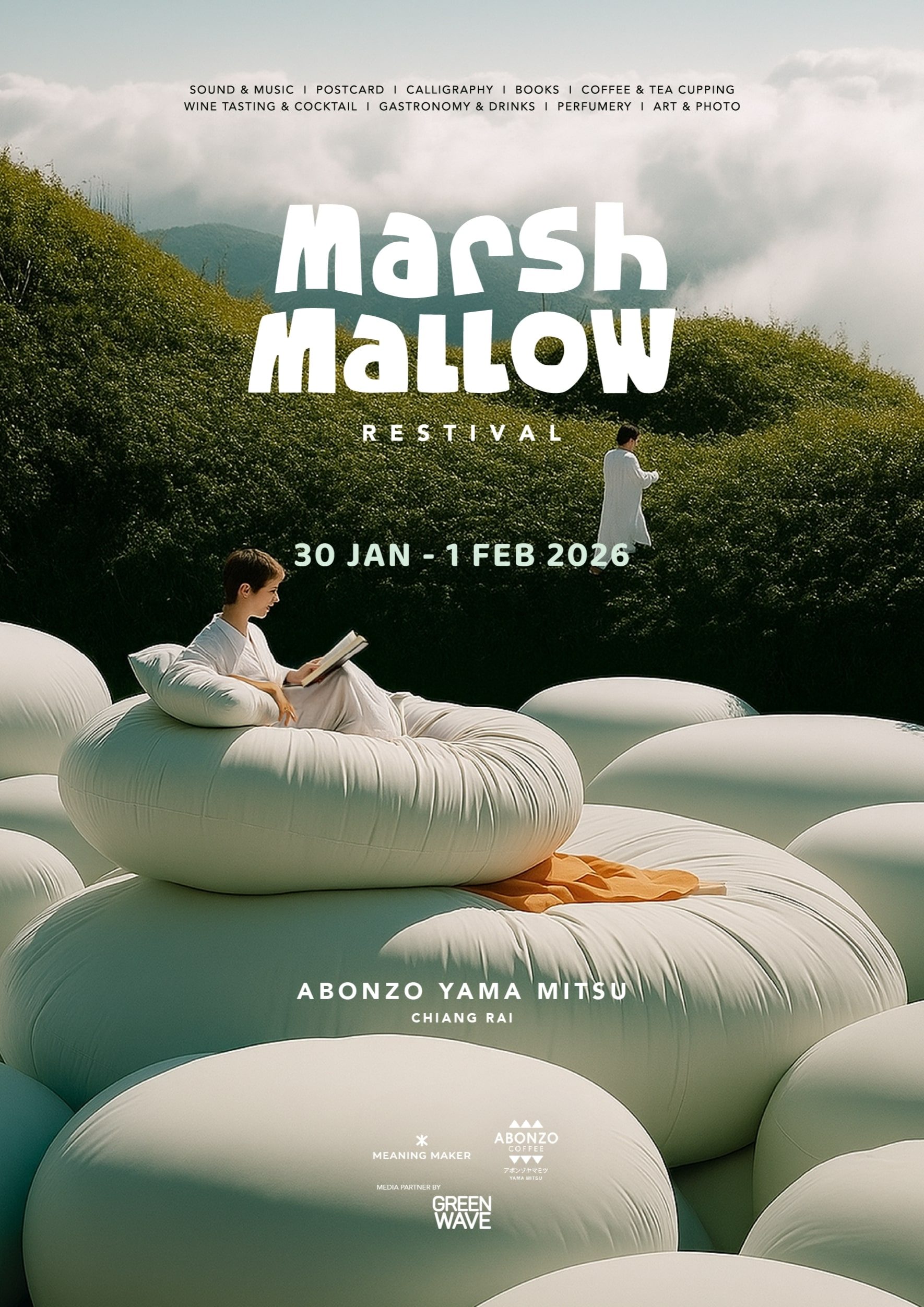 Experience a new kind of festival at Marshmallow Restival, taking place from Jan. 30 to Feb. 1, 2026, at Abonzo Yama Mitsu, Chiang Rai. Designed as a sanctuary for rest and inspiration, this first-of-its-kind event brings together music, art, nature, and meaningful encounters amid cool mountain breezes, breathtaking sunsets, and panoramic 360-degree views under a Vanilla Sky.