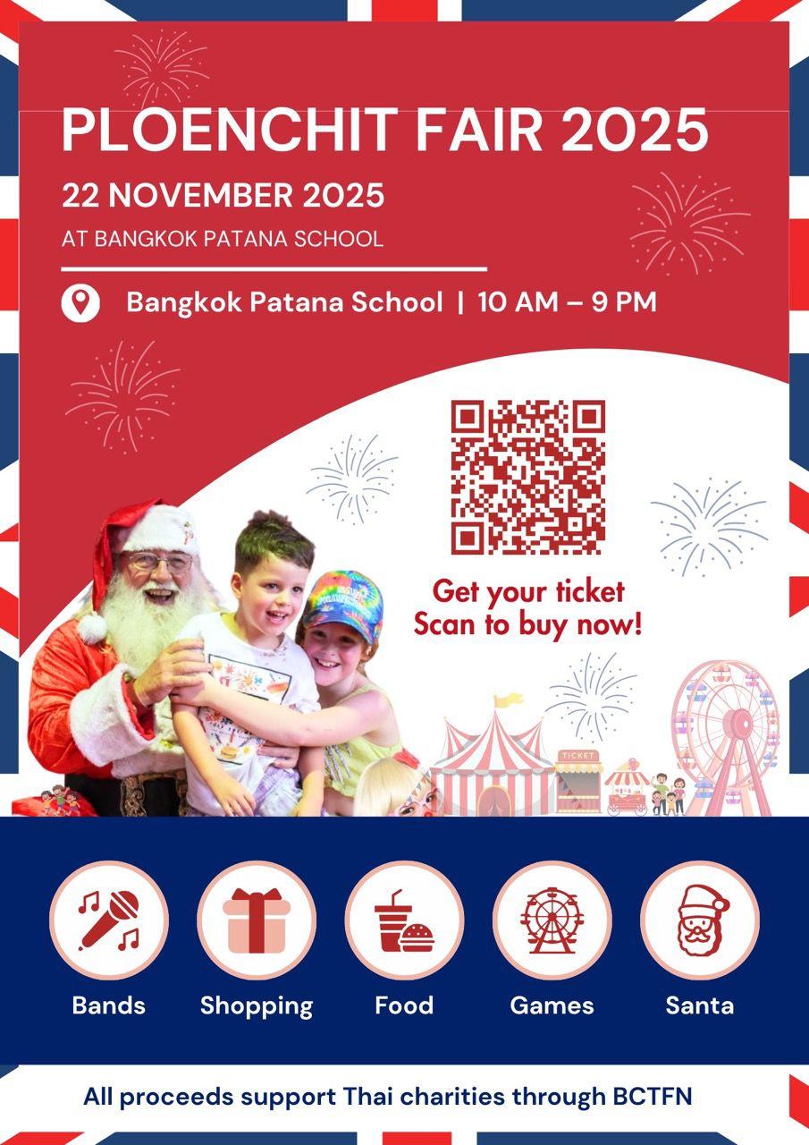 Celebrate a meaningful day of community, culture, and family fun at the Ploenchit Fair 2025, taking place on Nov. 22, 2025, at Bangkok Patana School. Organized by the British Community in Thailand Foundation for the Needy (BCTFN), this beloved charity fair has supported organizations across Thailand since 1957. This year’s edition continues the tradition of giving while offering a full day of entertainment, shopping, and festive activities for all ages.