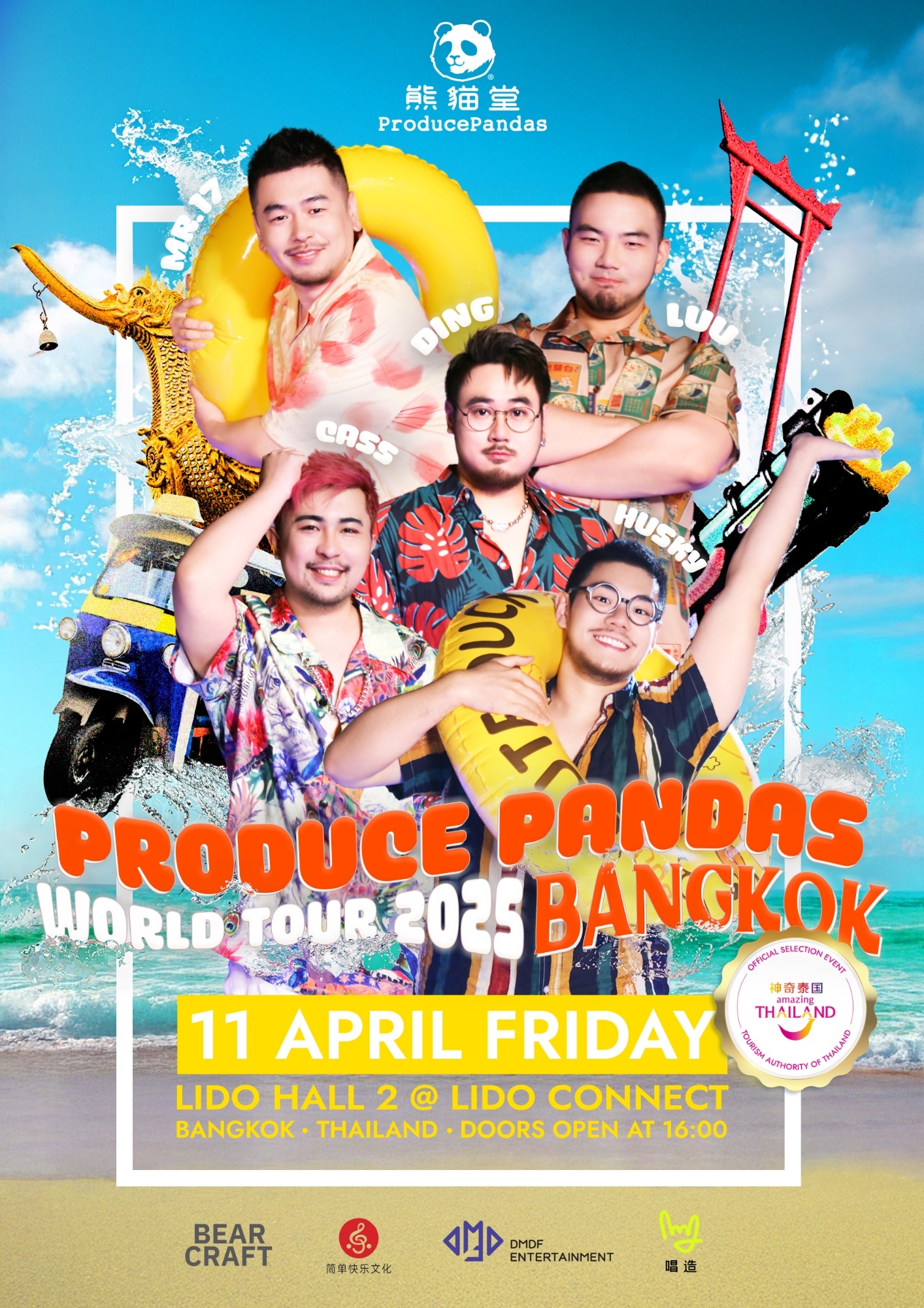 Prepare for an electrifying experience as Produce Pandas, China’s first plus-size boy band, takes the stage in Bangkok for the first time ever. Their 2025 World Tour lands at Lido Connect on April 11, bringing a thrilling 120-minute concert filled with powerful performances, catchy hits, and vibrant stage presence. With all five members—DING, Husky, Mr.17, Cass, and Luu—fans can expect an energy-packed night unlike any other.