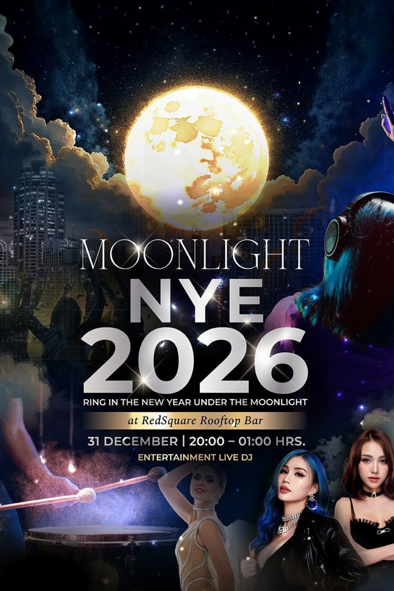 Ring in 2026 at the Moonlight New Year’s Eve Party at RedSquare Rooftop Bar, a sky-high celebration offering uninterrupted views of Bangkok’s city lights and fireworks. Held on Dec. 31, 2025, from 8 p.m. to 1 a.m., the event centers on unlimited premium food and drinks, a live DJ, and a series of special shows designed to elevate the countdown experience.