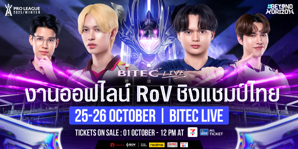 The RoV Pro League 2025 Winter: Championship Round is taking over BITEC LIVE, Bangkok, on Oct. 25–26, 2025, for an explosive weekend of esports action. Watch Thailand’s top four teams battle it out for the Season 16 championship title and a 10-million-baht prize pool.