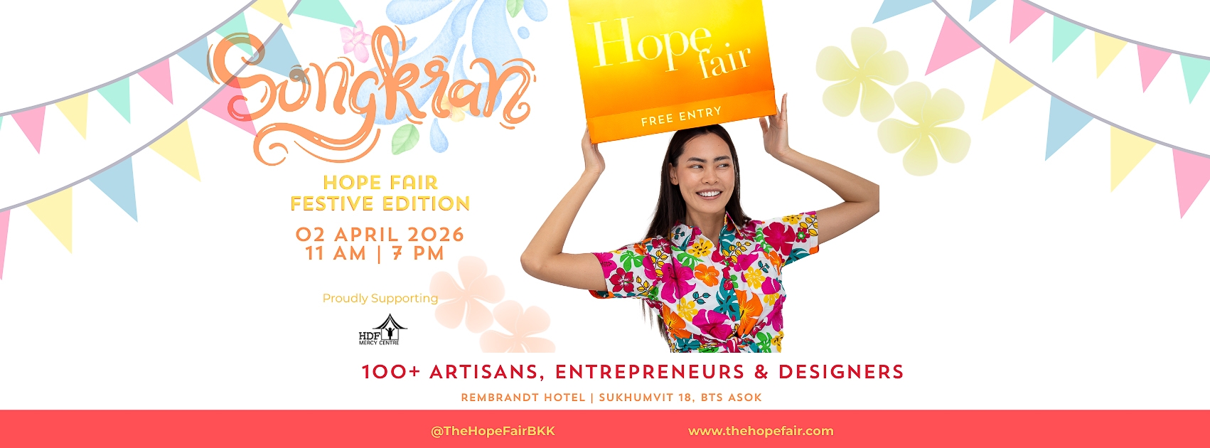 More than a market, The Hope Fair is a celebration of culture, creativity, and giving—inviting visitors to embrace the Songkran spirit while supporting local makers and meaningful causes.