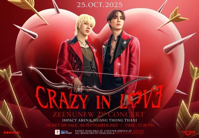 ZeeNuNew's 2nd Concert “Crazy in Love” takes over Impact Arena, Muang Thong Thani, on Oct. 25, 2025, at 5 PM. Following the success of their debut concert, the beloved duo Zee Pruk Panich and NuNew Chawarin Perdpiriyawong return to the stage with a brand-new production that celebrates passion, connection, and creativity.