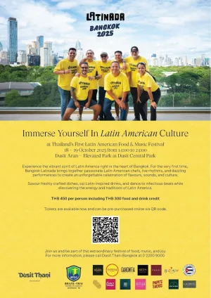 Get ready to move, eat, and celebrate at Latinada Bangkok 2025, scheduled on Oct. 18-19 at Dusit Central Park. This high-energy Latin American food and music festival will feature acclaimed chefs like Daniel and Tamara Chavez of Canchita, Alberto Garcia of Taqueria La Lupita, and Fernando Arevalo of Latido (Singapore), alongside thrilling performances, DJs, and live bands. Tickets start at THB450 with food and drink credit included.