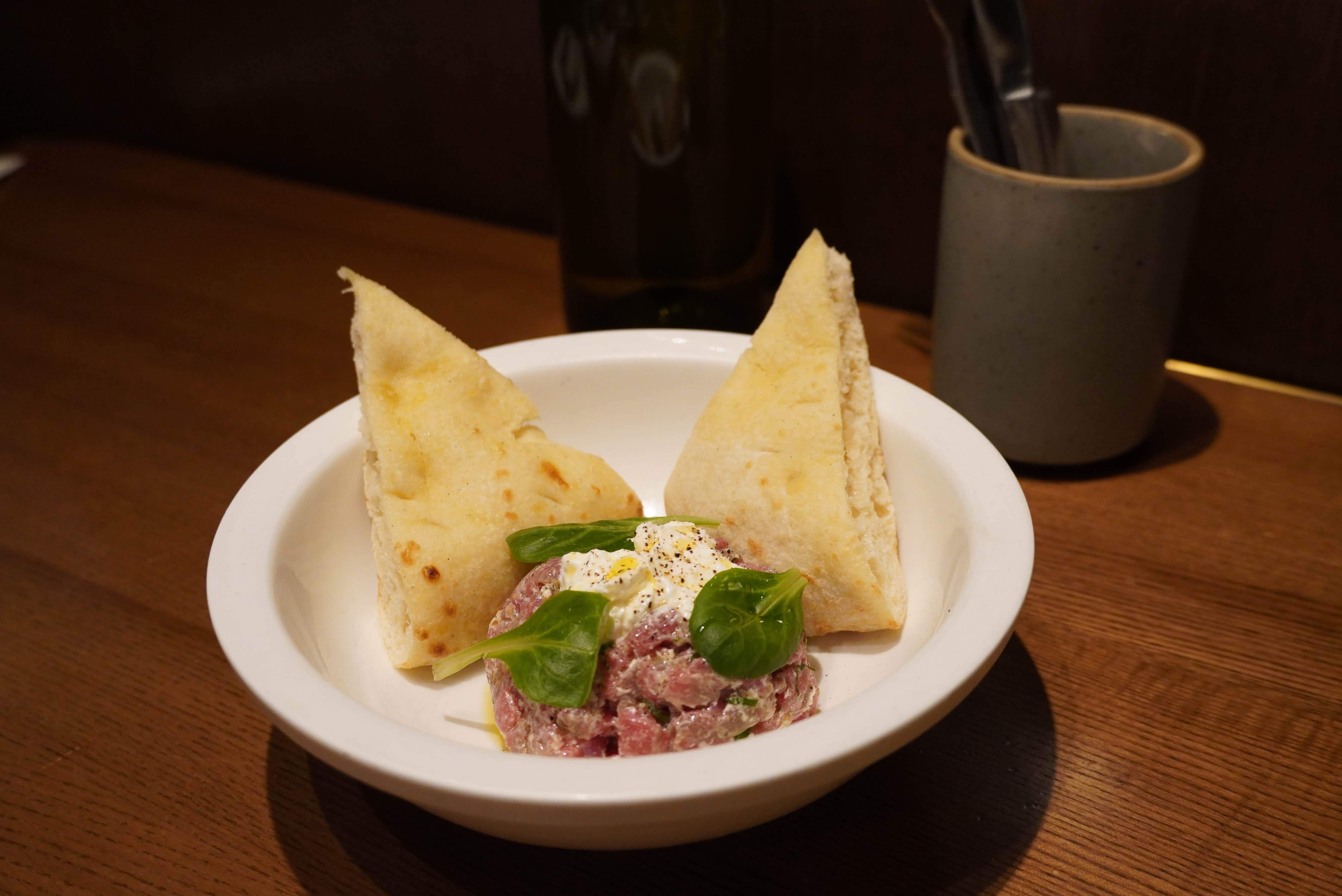 The pink tartare pops when mixing the beef and creamy cheese in a melange of creaminess, umami, and earthiness, as the chefs recommend. The diced beef is slightly fruity and fresh to the taste, with the anchovies and capers adding a nice tangy kick. Use the bread slices to scoop up the tartare for a pleasant garlic aftertaste, in lieu of salt in this dish which would be a nice addition.
