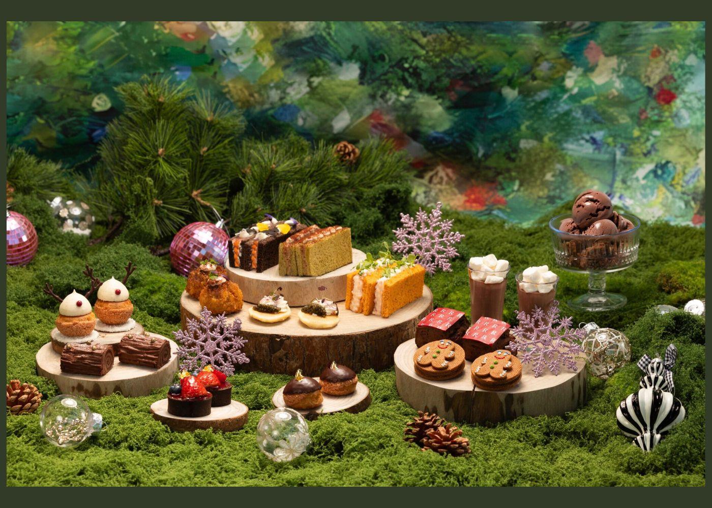 Guests can enjoy a trio of sandwiches, Foie Gras & Valrhona Chocolate Profiterole, Caviar Blini with Crème Fraîche & Onion, and Chestnut, Cocoa & Parmesan Croquette. Sweet indulgences include Tahiti Vanilla Choux with Coconut Sablé, Valrhona Chocolate Yule Log Cake, Chocolate Tart with Berries Confit, Gingerbread Cookies, and a whimsical Valrhona Chocolate “Gazpacho” with Marshmallows. Cranberry Chocolate Scones and the rich XTC Gelato complete the luxurious experience.