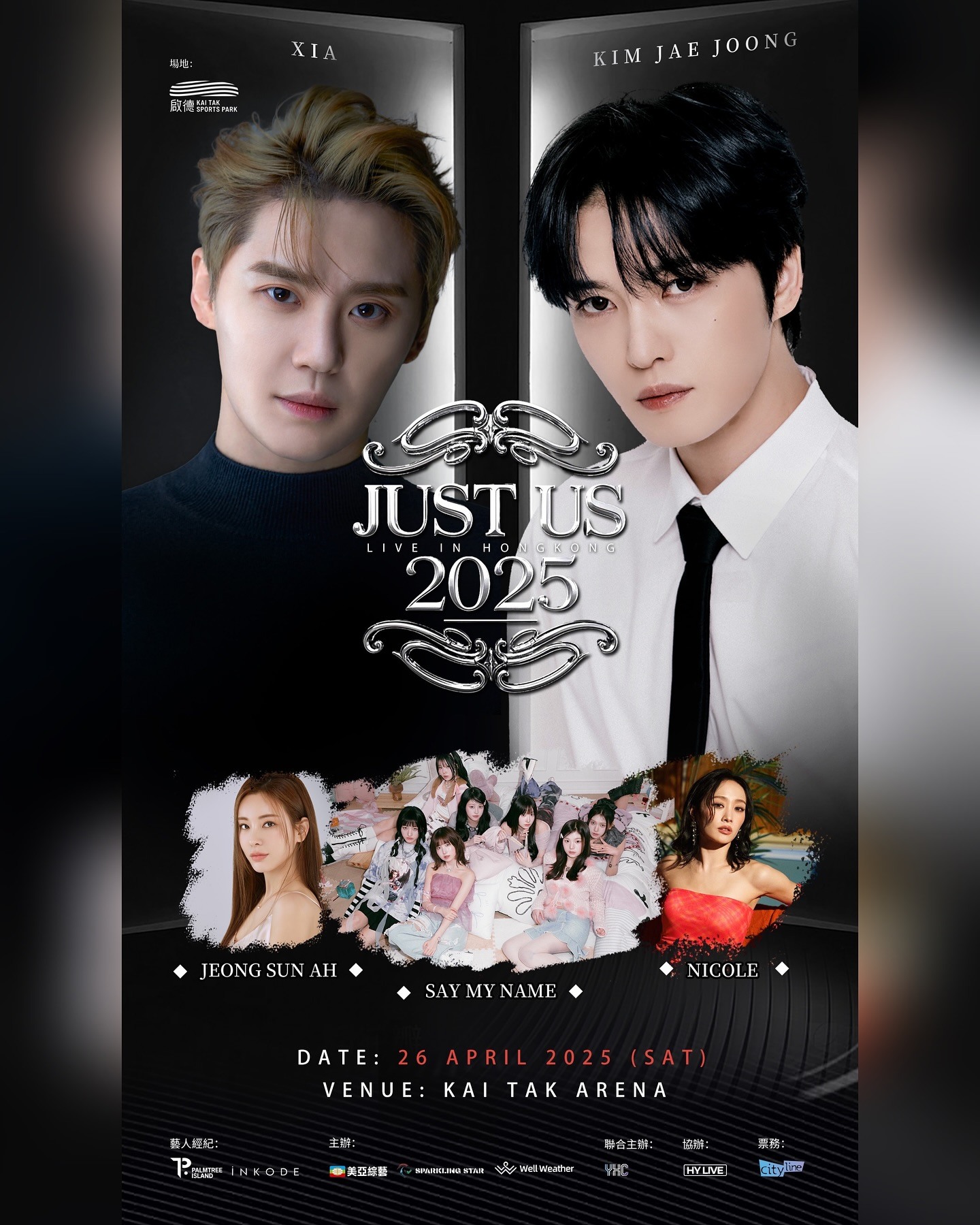 K-pop legends unite for the spectacular JUST US 2025 Live in Hong Kong at Kai Tak Arena on April 26, 2025. This star-studded concert features iconic artists including XIA (Kim Junsu), Kim Jaejoong, Jeong Sun Ah, Nicole, and SAY MY NAME, promising an unforgettable night of powerful performances and fan interactions.