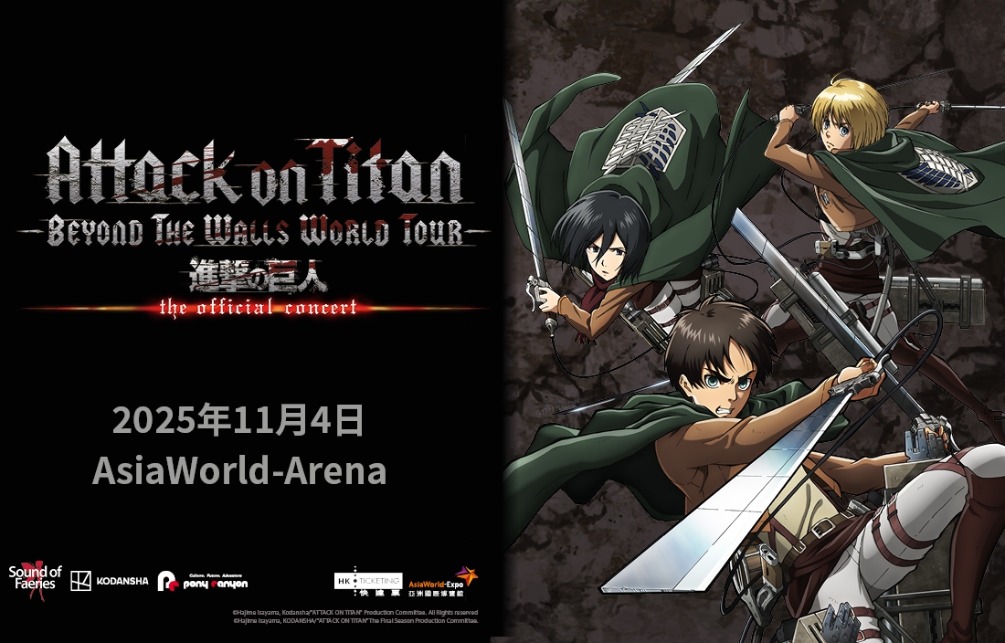 Enter the world of “Attack on Titan” like never before at the “Attack on Titan” - Beyond the Walls World Tour - The Official Concert, coming to AsiaWorld-Arena (Hall 1) on Nov. 4, 2025, at 8 PM. Presented by Sound of Faeries Limited, this Hong Kong premiere promises a spectacular fusion of live orchestral performance and large-scale video projection that will captivate fans of the legendary anime series.