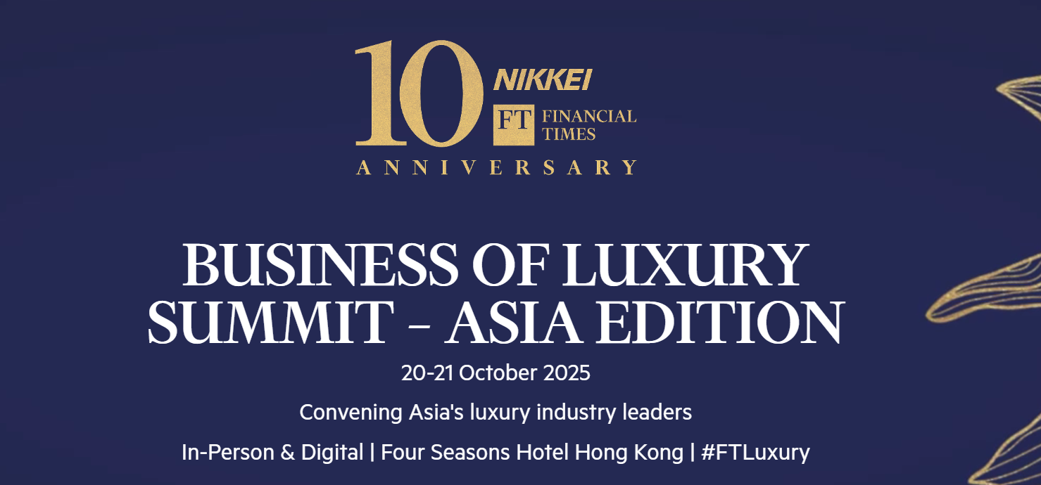 The Business of Luxury Summit – Asia Edition takes place on Oct. 20–21, 2025 at the world-renowned Four Seasons Hotel Hong Kong. Celebrating a 10-year partnership between Nikkei and the Financial Times, this landmark event brings together the most influential voices in luxury to discuss how to navigate a rapidly evolving industry.