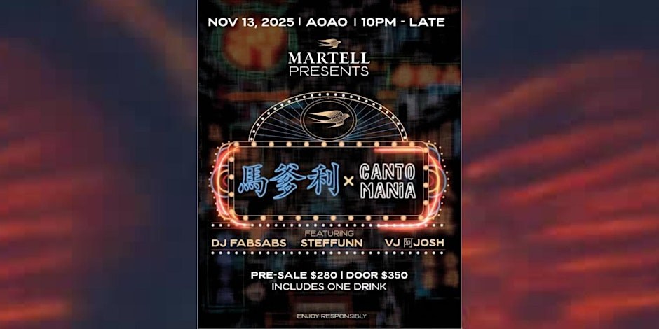 Get ready to relive the golden eras of Cantopop at Cantomania x AOAO x Martell, happening on Nov. 13, 2025 (Thursday), from 10 PM to 2:30 AM at AOAO, 14/F Manning House. This high-energy music event celebrates Hong Kong’s rich pop culture with an electrifying blend of beats, visuals, and nostalgia.