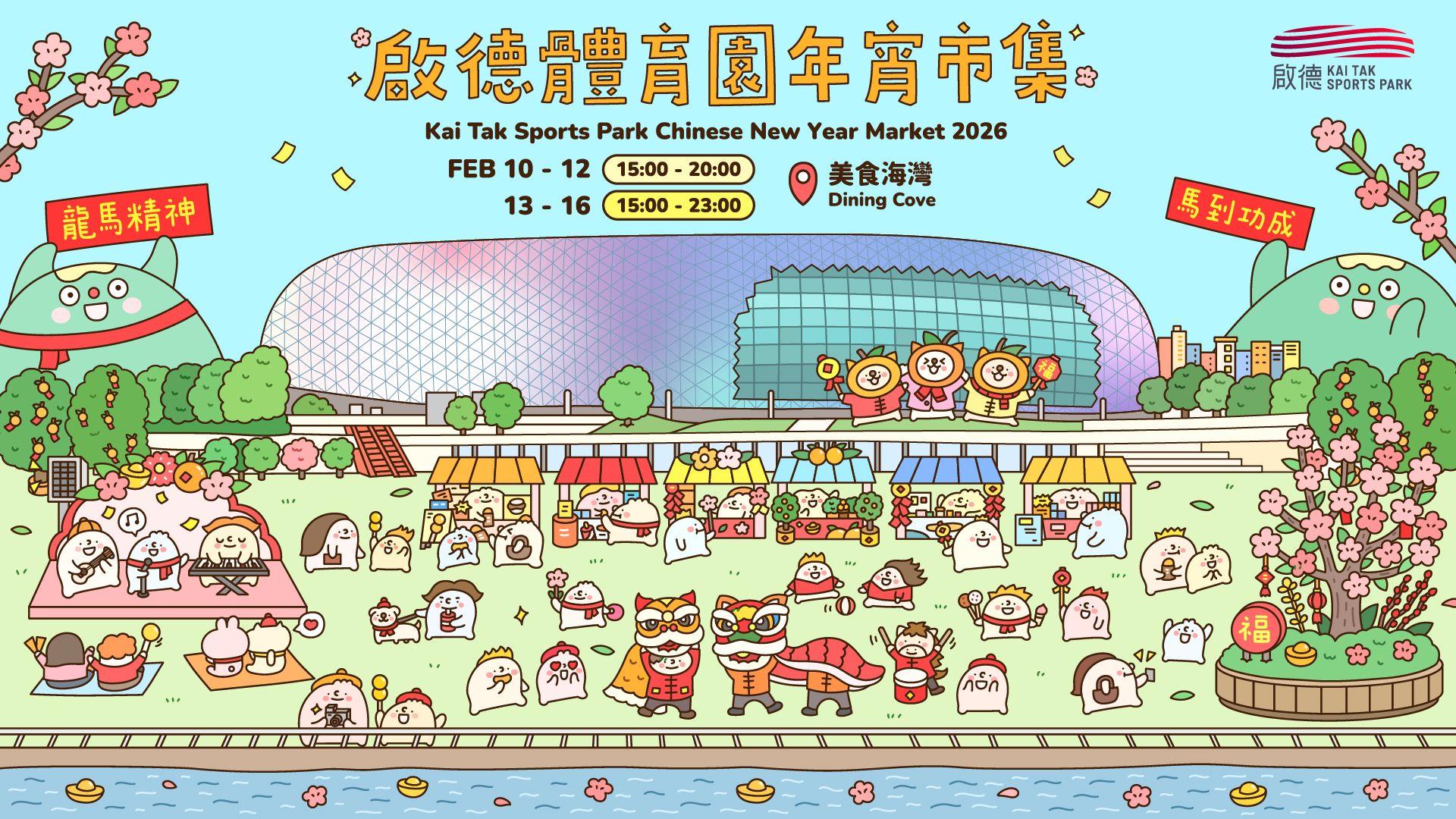 Celebrate the Lunar New Year at Kai Tak Sports Park Chinese New Year Celebration from Jan. 30 to Feb. 26, 2026, a festive extravaganza welcoming the Year of the Horse. The event features indoor and outdoor markets, family-friendly activities, and shopping rewards, offering a vibrant experience for visitors of all ages. From Feb. 10-16, the first-ever Kai Tak Sports Park Chinese New Year Market at Dining Cove showcases over 30 booths, offering handmade puddings, traditional snacks, festive cocktails, and interactive activities such as balloon twisting and face painting.
