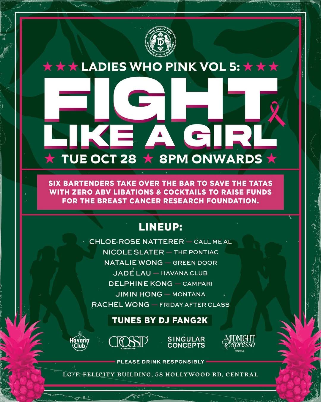 Celebrate strength, spirit, and sisterhood at Ladies Who Pink: Fight Like A Girl, happening on Tuesday, Oct. 28, 2025, from 8 PM onwards at The Daily Tot, Central. Now in its fifth year, this empowering charity event unites Hong Kong’s top bartenders for an unforgettable night of cocktails and community, all to raise funds for the Breast Cancer Research Foundation.