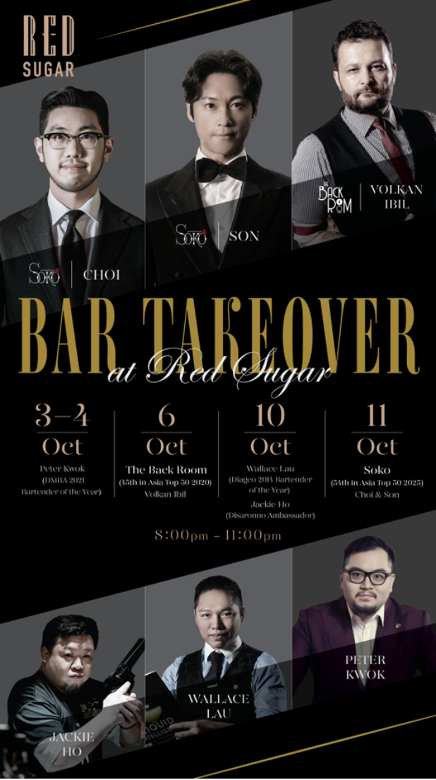 Experience an unforgettable week of cocktails at Red Sugar, Kerry Hotel, Hong Kong, as the bar presents its Guest Shift Series from Oct. 3-11, 2025, from 8 PM to 11 PM. This limited-time takeover brings together six renowned bartenders, each delivering their signature creations and distinctive style to one of Hong Kong’s most stunning rooftop venues.