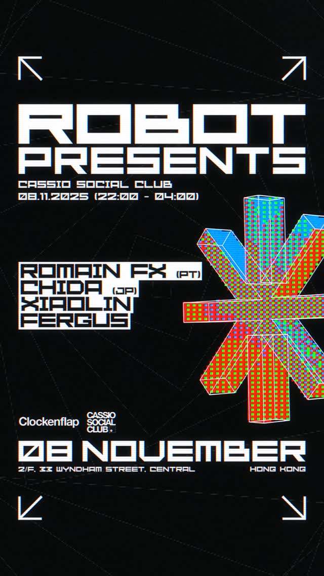 Step into a night of pulsating beats and underground energy as ROBOT Presents takes over Cassio on Nov. 8, 2025, from 10 PM to 4 AM. This exciting series spotlights the electronic side of Clockenflap Music Festival, bringing together some of the most forward-thinking acts from around the globe and Hong Kong’s own thriving scene.