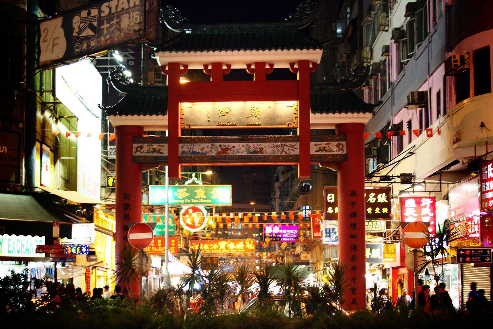 The famous night market in Hong Kong is located in Temple Street near Kowloon Park and is open until 10 PM.