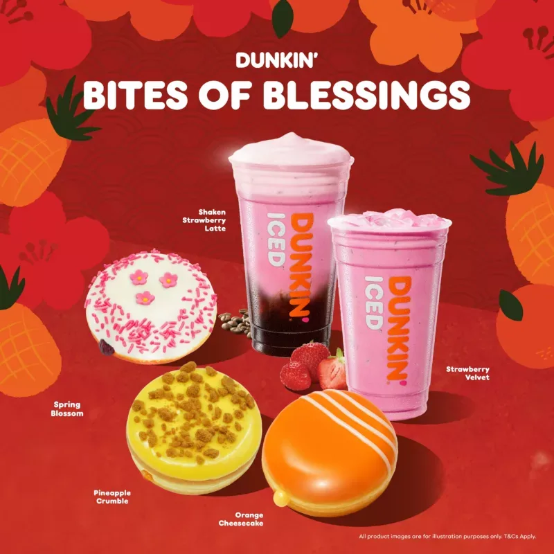 Celebrate the Lunar New Year with Dunkin’: Chinese New Year Specials, available from Jan. 5 to Feb. 22, 2026. This festive season, enjoy Bites of Blessings, a collection of treats crafted to bring joy, togetherness, and a touch of sweetness to every celebration.