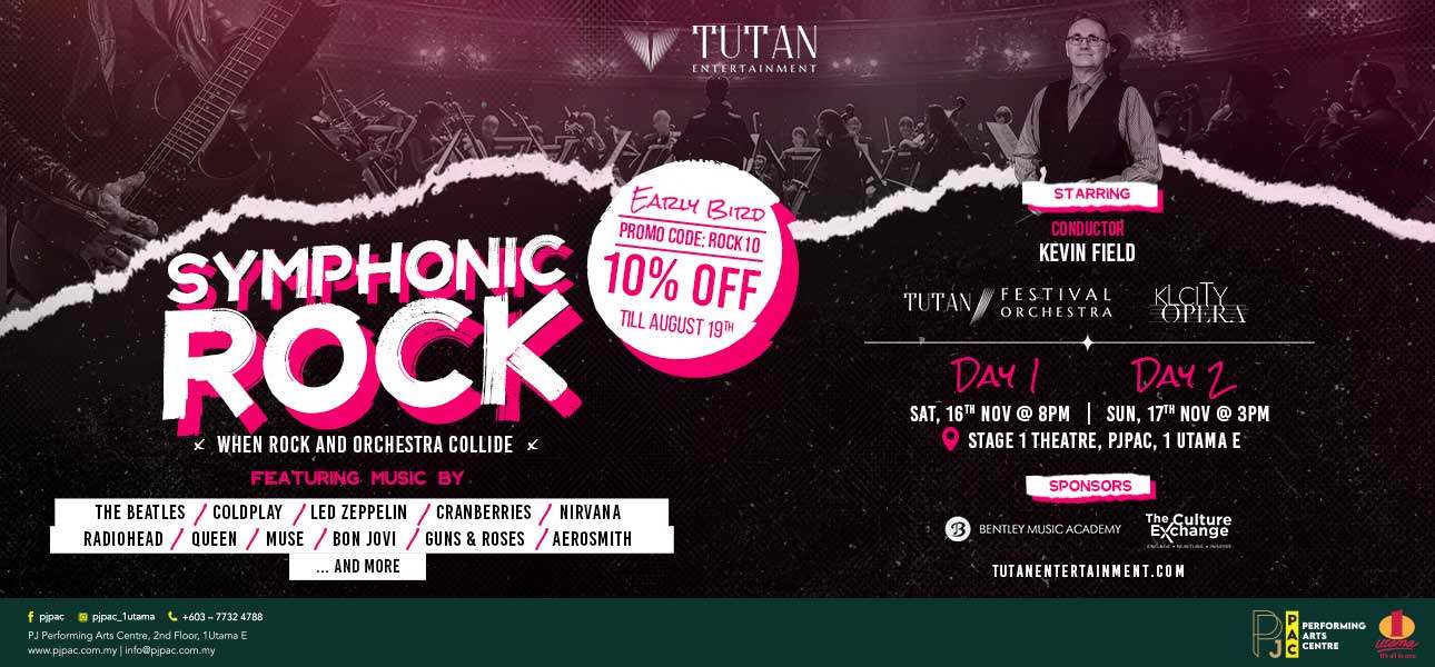 The Tutan Festival Orchestra, led by the dynamic and passionate conductor Kevin Field, brings each song to life with masterful arrangements that seamlessly blend classical and contemporary styles. Joining the orchestra are the powerful voices of the Kuala Lumpur City Opera, adding a dramatic, operatic twist to your favorite rock anthems. Known for his exhilarating energy, Kevin Field's exceptional ability to fuse rock rhythms with soaring strings and commanding brass makes each piece a unique auditory experience.