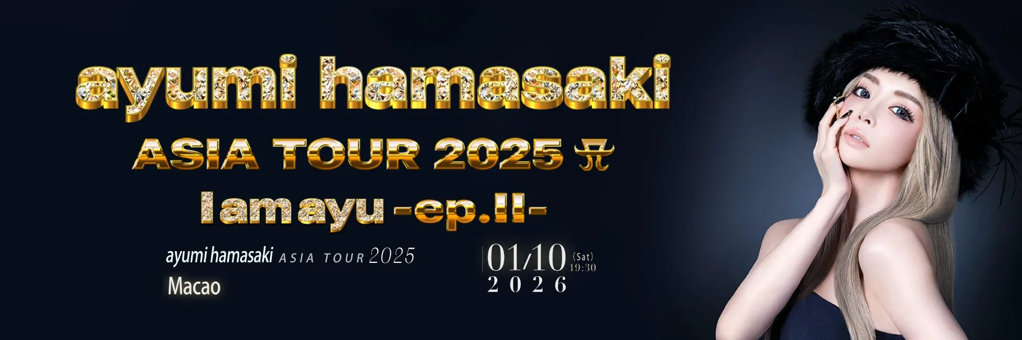 Join the sensational ayumi hamasaki ASIA TOUR 2025 「I am ayu Episode II」 at The Venetian Arena in Macao on Jan. 10, 2026, starting at 7:30 PM. Tickets are available for MOP$2230/$1890/$1550/$1100/$770. This highly anticipated tour showcases a fully upgraded concert experience, combining golden hits, dazzling stage design, and newly customized costumes into a captivating visual narrative.