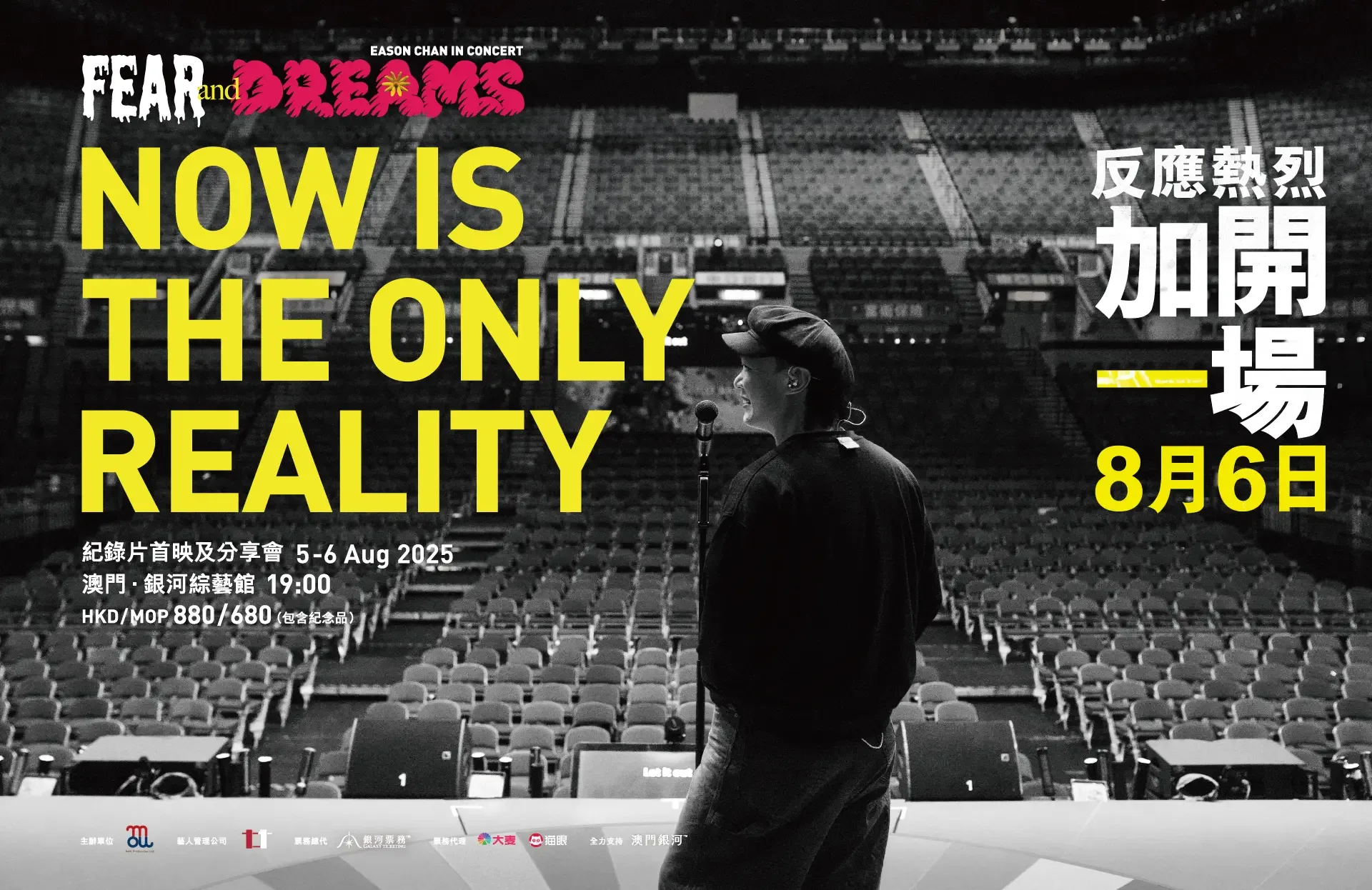 Step inside the journey of one of Cantopop’s most iconic voices at Eason Chan《FEAR and DREAMS: NOW is the only reality》Documentary Premiere and Sharing Event, happening on Aug. 5 and 6, 2025 at Galaxy Arena, Macau.