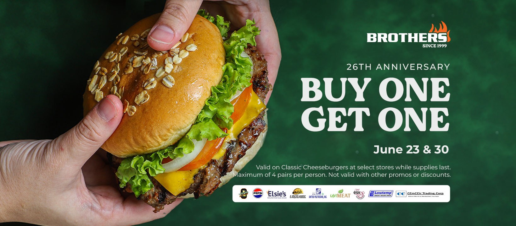 Brothers Burger 26th Anniversary Promo: BUY 1, GET 1