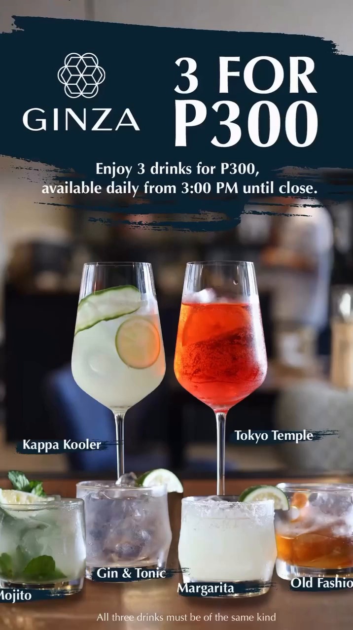 Unwind at Ginza Ortigas with the unbeatable 3 for P300 Happy Hour deal, featuring refreshing cocktails such as the Kappa Kooler, Tokyo Temple, Gin & Tonic, and Margarita. Available daily from 3 PM till close, this promotion lets guests enjoy three drinks for just P300, making it an ideal escape after a day of meetings, deadlines, or city hustle. The laid-back Japanese-inspired vibe invites relaxation, whether sipping solo or with work besties, as laughter and vibrant energy fill the air.