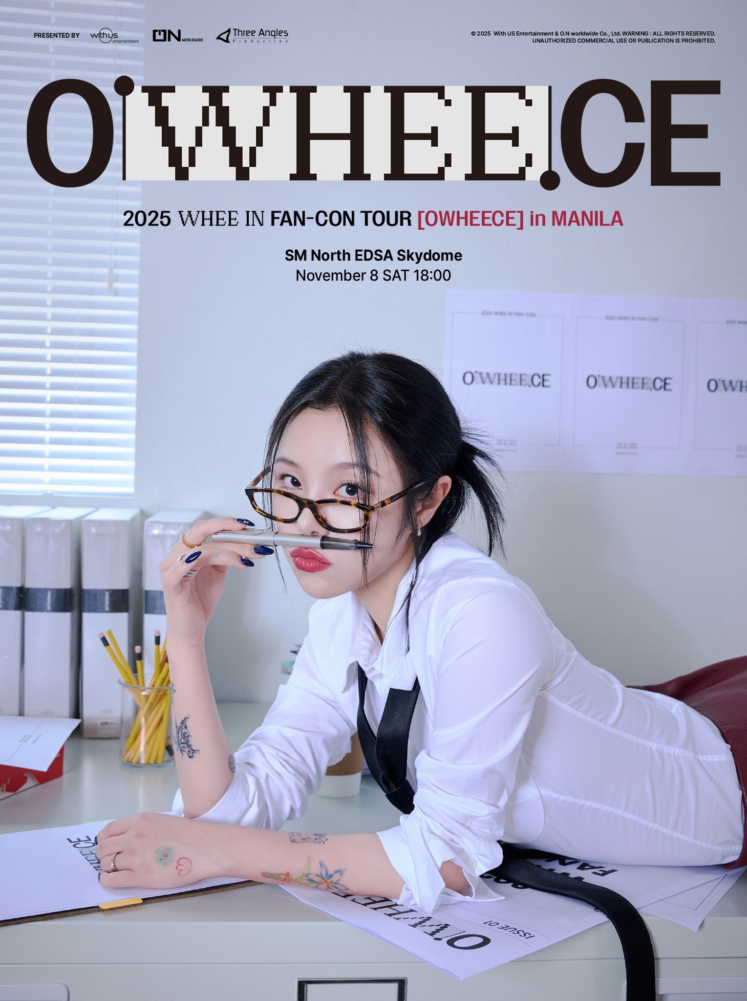 Known for her soulful vocals and captivating performances, Whee In will serenade fans with hits like “Water Color,” “EASY,” and “Blossom Flower,” blending artistry and emotion in an intimate fan experience. This Manila stop is part of her ongoing OWHEECE tour across Asia, which has already charmed audiences in Seoul, Taipei, Macau, Singapore, and Kaohsiung.