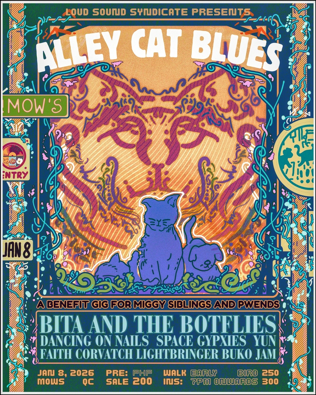 A night of blues, rock, and purpose takes over Mow’s in Quezon City on Jan. 8 as Loud Sound Syndicate mounts “Alley Cat Blues,” a benefit gig dedicated to supporting Miggy Siblings and Pwends’ local cat shelter.