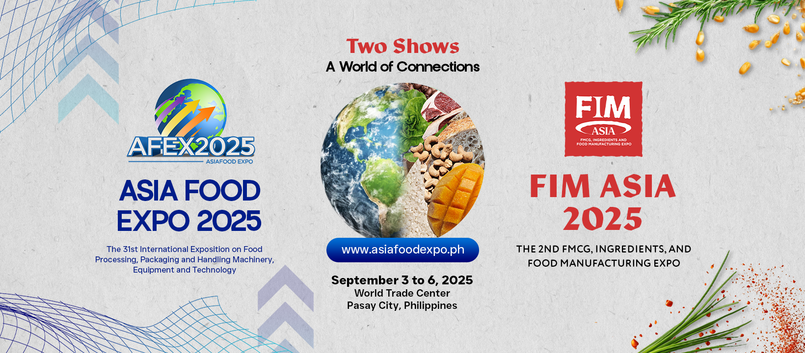Asia Food Expo (AFEX) returns Sept. 3-6, 2025, at the World Trade Center, Manila, bringing together the best in food processing, packaging, handling, and manufacturing technology. Widely recognized as the country’s leading trade platform for food and beverage businesses, AFEX serves as a gateway for small and medium enterprises to expand their reach and explore global opportunities.