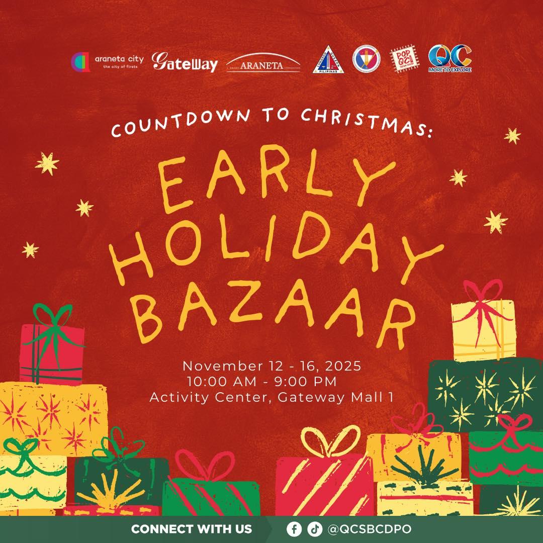 Get a head start on holiday shopping at the Countdown to Christmas: Early Christmas Bazaar, happening Nov. 12-16, 2025, from 10 a.m. to 9 p.m. at the Gateway Mall 1 Activity Area, Araneta City. This festive market brings together QCpreneurs under the Proudly Original Products of QC (POP QC) program, showcasing a wide array of dekalidad local products perfect for holiday gifts, stocking stuffers, or self-indulgence.