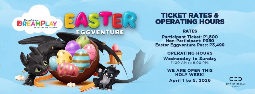 DreamPlay at City of Dreams Manila welcomes families to Easter Eggventure 2026, a themed celebration designed for young adventurers and their companions. The experience is available during DreamPlay’s regular operating days, offering a full day of imaginative play, discovery, and Easter‑inspired activities.