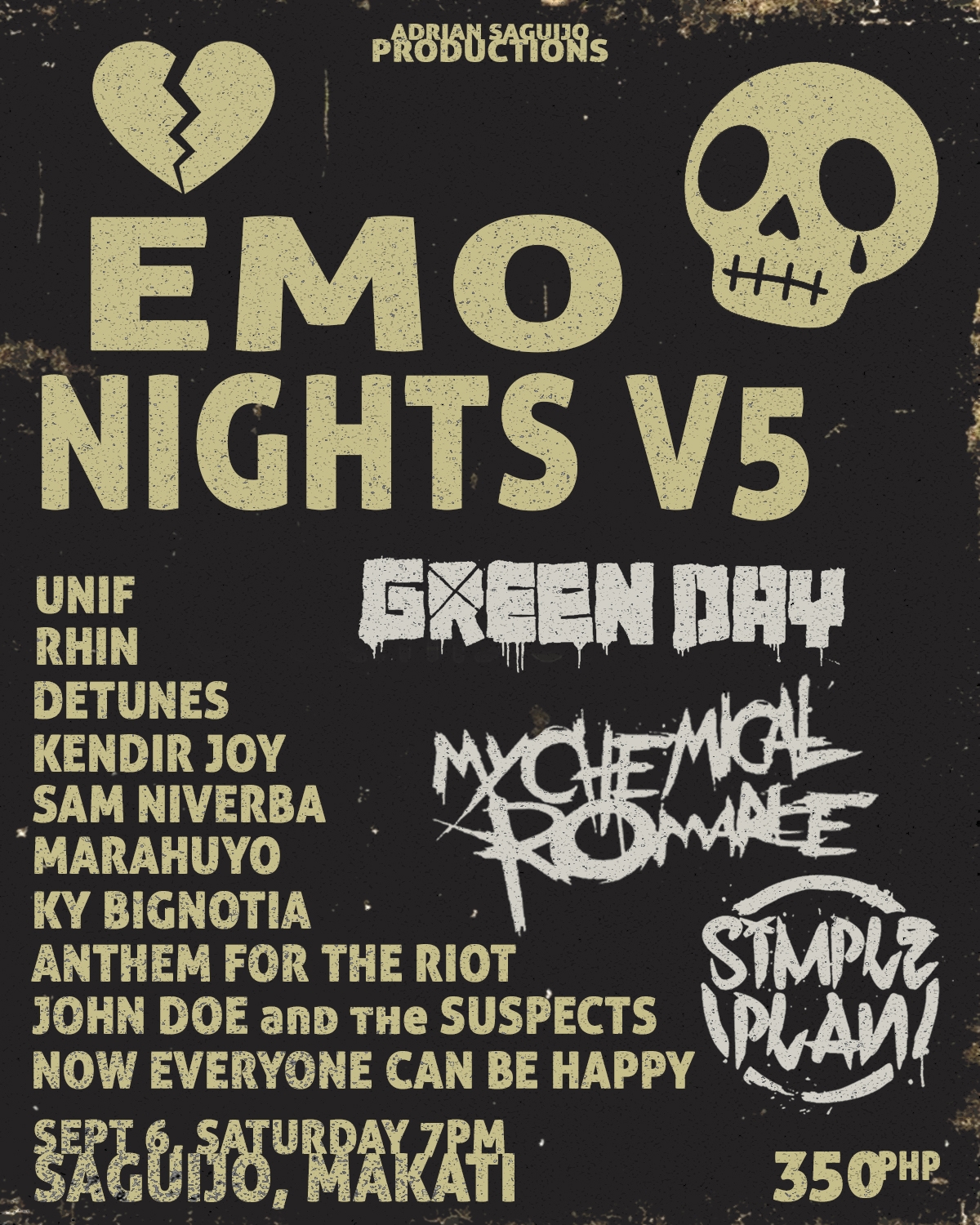 Expect an explosive lineup featuring Unif, Rhin, Detunes, Kendir Joy, Sam Niverba, Marahuyo, Ky Bignotia, Anthem For The Riot, John Doe and The Suspects, and Now Everyone Can Be Happy. Each act will bring their own twist to the emo and pop-punk anthems you grew up with, promising a night of pure nostalgia mixed with fresh local energy.