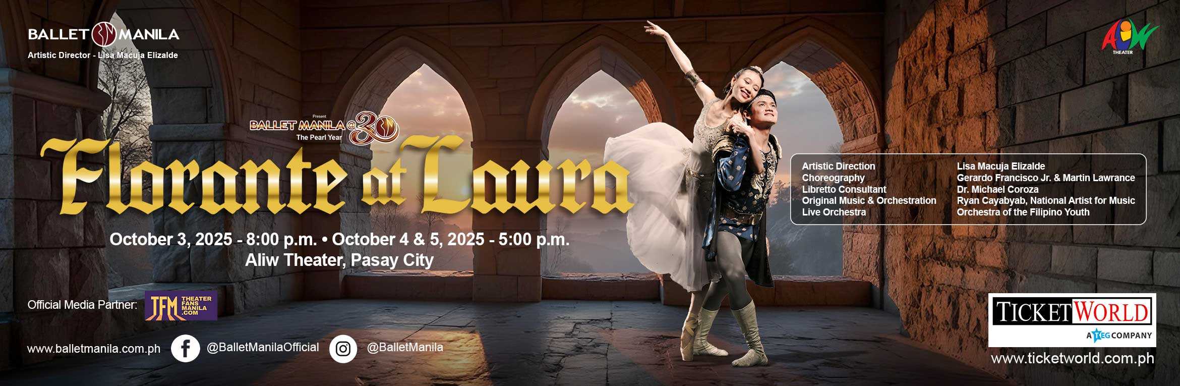 Ballet Manila presents “Florante at Laura”, returning for a limited run from Oct. 3-5, 2025, at the Aliw Theater. This ballet retells Francisco Balagtas’ timeless epic of love, heroism, and patriotism through powerful dance, live music, and world-class artistry.