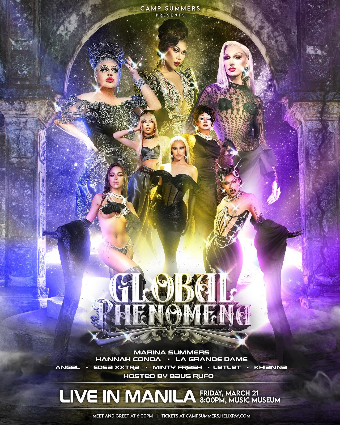 Camp Summers presents "Global Phenomena," an epic reunion celebrating the one-year anniversary of "RuPaul’s Drag Race UK vs. The World Season 2!" Prepare for a spectacular night as Marina Summers, Hannah Conda, and La Grande Dame reunite onstage for jaw-dropping performances, stunning fashion, and an interactive audience Q&A session.