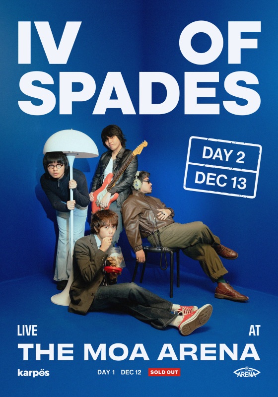 Experience the ultimate comeback of one of the Philippines’ most iconic bands as IV OF SPADES returns to the big stage for IV OF SPADES LIVE AT THE MOA ARENA on Dec. 12-13, 2025, at 8 PM. Taking over the SM Mall of Asia Arena, the full original lineup — Badjao, Blaster, Unique, and Zild — reunites for an unforgettable night of music, nostalgia, and pure rock magic.