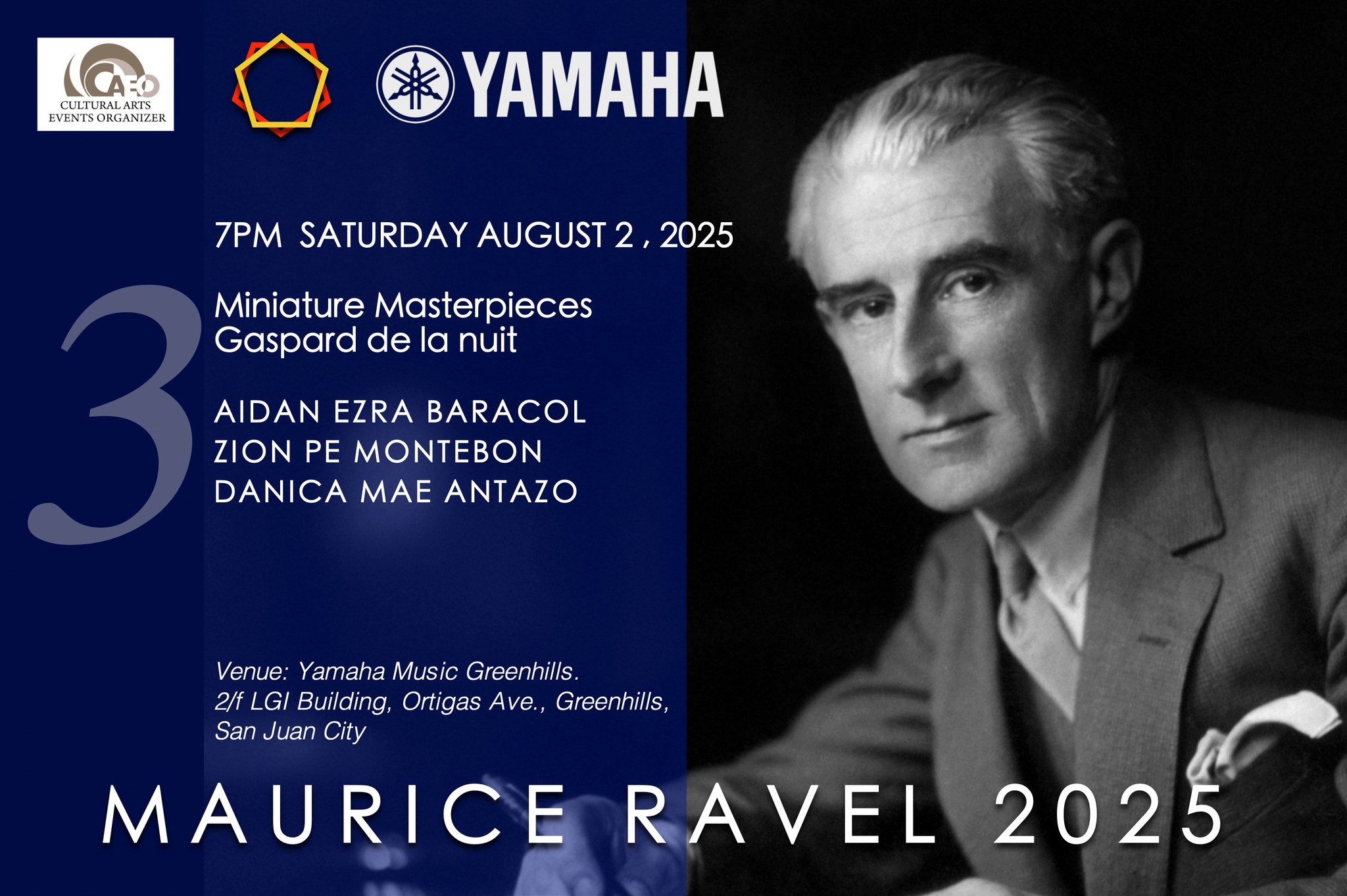 Experience the dazzling brilliance of Maurice Ravel’s most iconic piano works at "Concert 3: The Piano Music," part of the Maurice Ravel 2025 Festival. Happening on Saturday, Aug. 2, 2025, at 7 PM at Yamaha Music Greenhills, this program dives deep into the composer’s signature impressionistic style—full of rich textures, vibrant colors, and evocative nuance.