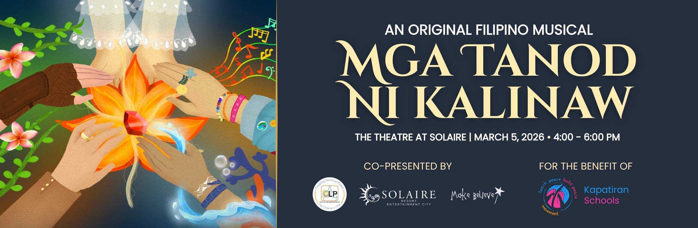 Presented in partnership with The Theatre at Solaire and Make Believe Productions, this special performance benefits the Teach Peace Build Peace Movement kapatiran schools. Experience a powerful story of harmony and redemption brought to life on stage.