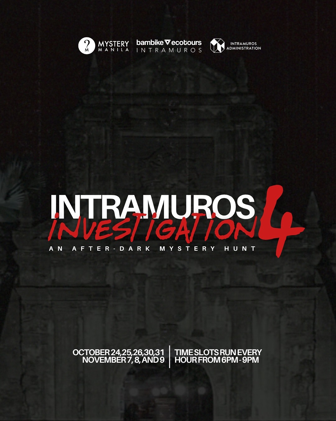 Experience Intramuros like never before in Intramuros Investigation IV, a spine-tingling night adventure by Mystery Manila, Bambike, and Intramuros Administration. Running from Oct. 24-26, 30-31, and Nov. 7-9, 2025, the event offers two distinct mysteries: the Walking Mystery at Fort Santiago for P899 per head, and the Biking Mystery at Bambike HQ for P999 per head. Each adventure features unique storylines, routes, and puzzles designed to test your detective skills in groups of up to seven players.
