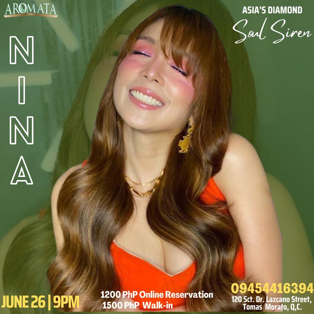 Experience an unforgettable evening with Asia’s Diamond Soul Siren, Nina, live at Aromata on June 26 at 9 PM! Celebrated for her powerful vocals and captivating performances, Nina rose to prominence in 2005 with her third album, Nina Live!—certified diamond by the Philippine Association of the Record Industry. This iconic album featured her most successful single, "Love Moves in Mysterious Ways," solidifying her status as a music industry powerhouse.