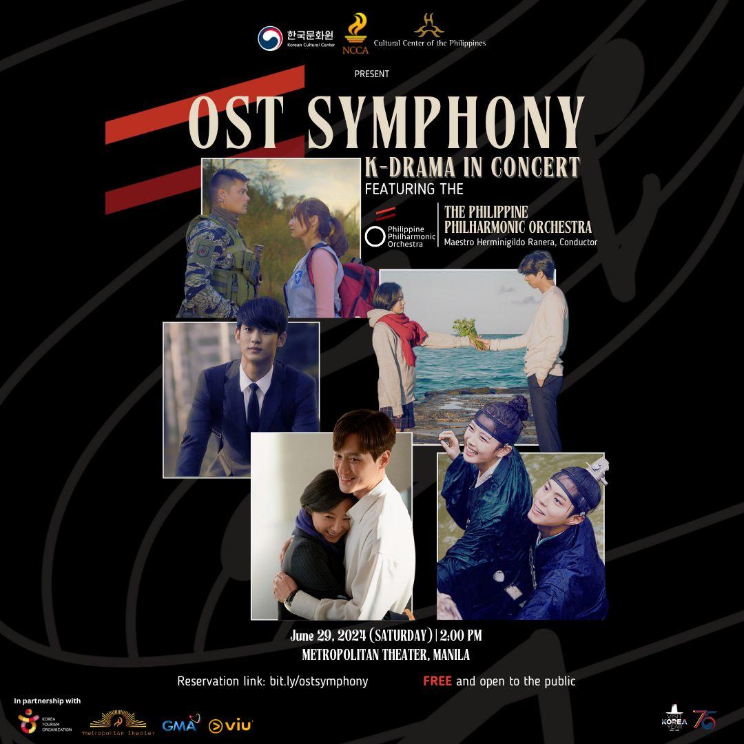 Experience the magic of K-Drama like never before at OST Symphony: K-Drama in Concert on June 29, 2024 (Saturday) at the Metropolitan Theater, Manila. This symphonic concert, presented by the Korean Cultural Center in the Philippines, will feature the iconic soundtracks of popular Korean dramas performed by the Philippine Philharmonic Orchestra under the baton of Maestro Herminigildo Ranera. Special guest performers Julie Ann San Jose and Zephanie Dimaranan will also grace the stage, adding their unique touch to the event.