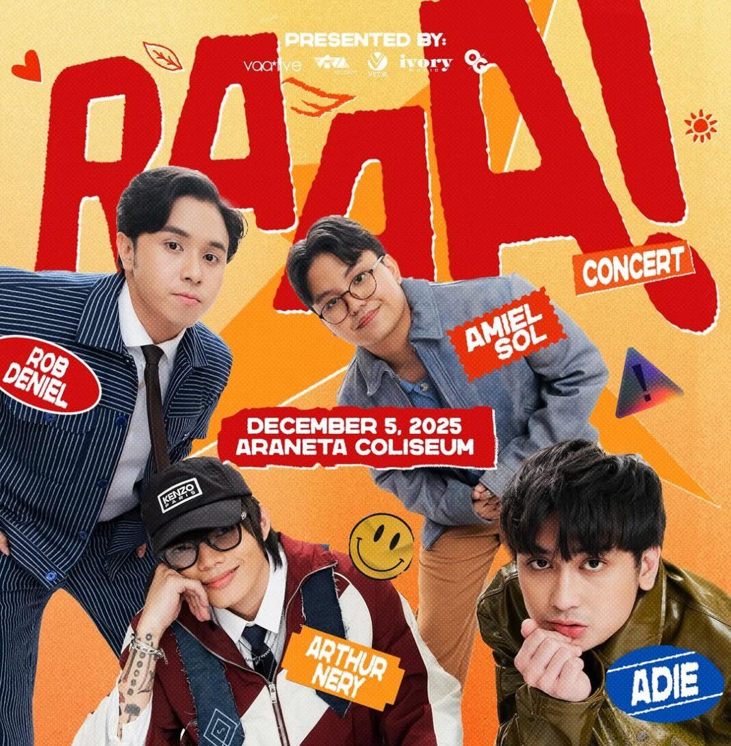 Experience a powerhouse night of music and emotion at RAAA!, happening on Dec. 5, 2025, 8 PM at the Smart Araneta Coliseum. Featuring four of today’s most talented Filipino artists — Rob, Amiel, Adie, and Arthur — this highly anticipated concert promises an unforgettable showcase of heartfelt performances, chart-topping hits, and soulful collaborations.